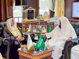 أستقبل معالي رئيس الشؤون الدينية بالمسجد الحرام والمسجد النبوي، الشيخ الأستاذ الدكتور عبدالرحمن بن عبدالعزيز السديس في فرع رئاسة الشؤون الدينية بالمسجد النبوي، فضيلة الشيخ عبدالرحمن خاشقجي، شيخ مؤذني المسجد النبوي.