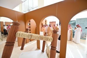 واستمع إلى عرضٍ من مدير عام فروع هيئة التراث بالمملكة رستم بن مقبول الكبيسي، عن برنامج بيت الحرفيين، الذي التحق به 30 حرفيًّا وحرفية، ويستمر عامًا، ويشمل في مرحلته الأولى ثلاث حِرف هي: “صناعة القعايد، وحياكة الطواقي، ومشغولات الصدف البحري”.