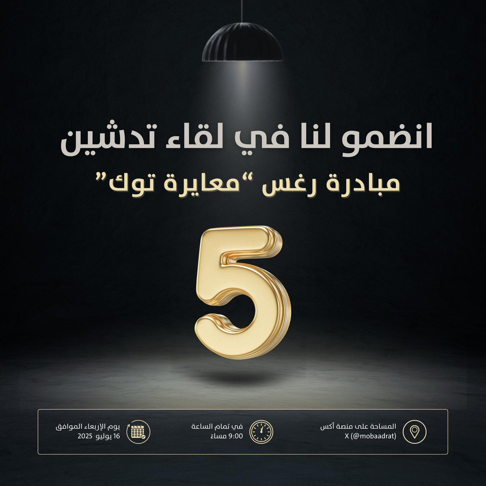 لمتابعة تسجيل تدشين “معايرة توك 5″، يمكنكم زيارة حساب المبادرة على منصة X عبر @mobaadrat.