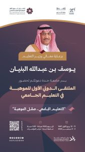تحت رعاية معالي وزير التعليم الأستاذ يوسف بن عبد الله البنيان، تستعد جامعة جدة لإطلاق الملتقى الدولي الأول للموهبة في التعليم الجامعي يُعنى برعاية الموهبة والابتكار، خلال الفترة من ٣-٤ سبتمبر ٢٠٢٥م في مركز المؤتمرات بجامعة جدة.