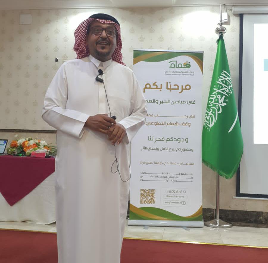 قدّم اللقاء الأستاذ *بندر القحطاني* -مدير إدارة التطوع بجمعية نماء المكية-، مستعرضًا خلال الجلسة عدة محاور أساسية، شملت: