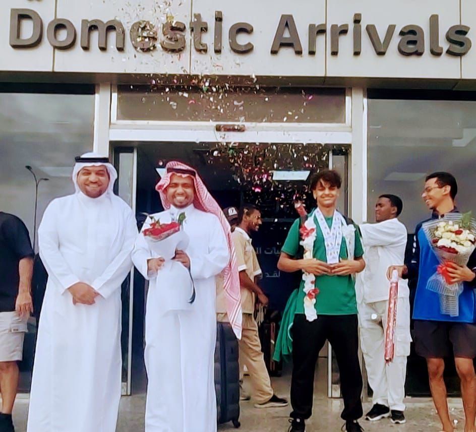 استقبل رئيس نادي اليرموك، الدكتور خالد بن عبدالله أبو جبل، لاعب النادي أحمد مخاي بطل العرب وغرب آسيا، بمطار الملك عبدالله الدولي بمنطقة جازان، في استقبال حافل يُظهر تقدير النادي لإنجازات لاعبيه.