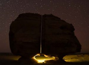 في عمق صحراء تيماء شمال غرب المملكة العربية السعودية، تقف صخرة النصلة شامخة ومنفردة، مثيرةً فضول الزوار وعلماء الآثار والجيولوجيين على حد سواء. هذه الكتلة الصخرية الهائلة، التي انقسمت إلى نصفين متماثلين بدقة مذهلة، أصبحت رمزاً من رموز المكان، وحلقة وصل بين الأسطورة والعلم، وبين الماضي والحاضر.
