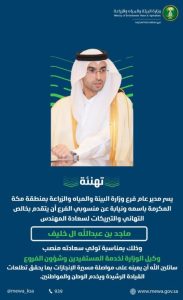 وأكد سعادته أن هذا التعيين تتويج لمسيرة حافلة بالإنجازات تجاوزت 15 عامًا، تنقّل خلالها المهندس الخليف بين مواقع قيادية في العمل البلدي وإدارة المياه وفرع الوزارة بمكة المكرمة، وأسهم في إدارة ملفات استراتيجية كبرى شملت مواسم الحج والأمن الحيوي وتطوير أسواق النفع العام وتعزيز خطط الطوارئ وتفعيل الدور الاستثماري، إضافة إلى إشرافه على مشروعات التحول المؤسسي وتكامل منظومة الفروع.