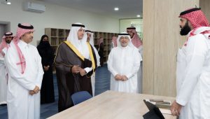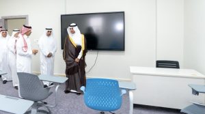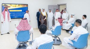 واطّلع سموّه على الإمكانات التدريبية والتعليمية المتوفرة، حيث تجول بالقاعات الدراسية والمختبرات والمعامل، واستمع إلى شرح مفصل من عمداء الكليات حول البرامج الأكاديمية والخطط التطويرية التي تهدف إلى رفع جودة التعليم وتحقيق مخرجات متميزة تتماشى مع مستهدفات رؤية المملكة 2030.