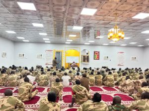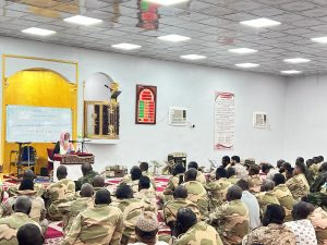 بتوجيه ومتابعة من سماحة مفتي عام المملكة ومعالي نائبه -حفظهم الله- ألقيت اليوم الثلاثاء كلمة توجيهية ضمن البرنامج التوعوي للقوات المساندة لعاصفة الحزم من فضيلة المستشار الشرعي بفرع الرئاسة العامة للبحوث العلمية والإفتاء بمنطقة جازان الشيخ محمد بن شامي شيبه لمنسوبي القوات المساندة لعاصفة الحزم من ضباط وأفراد.