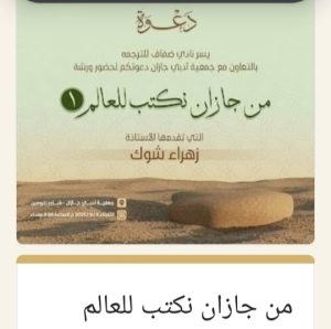من هُنا انطلقت فكره (من جازان نكتب للعالم)وسوف تكون مشروع أدبي ثقافي يسعى إلى إبراز نتاج كتابنا،تمكين المواهب الشابه وخلق جسور للتواصل الأدبي والثقافي ،بحيث نعرّف العالم على جازان من خلال الكلمه ونتيح لأصواتنا أن تحاور وتُشارك وتُلهم وتنقل أحاسيس كتابنا الجميله من خلال ترجمه ماكتبه مُببدعين جازان ..