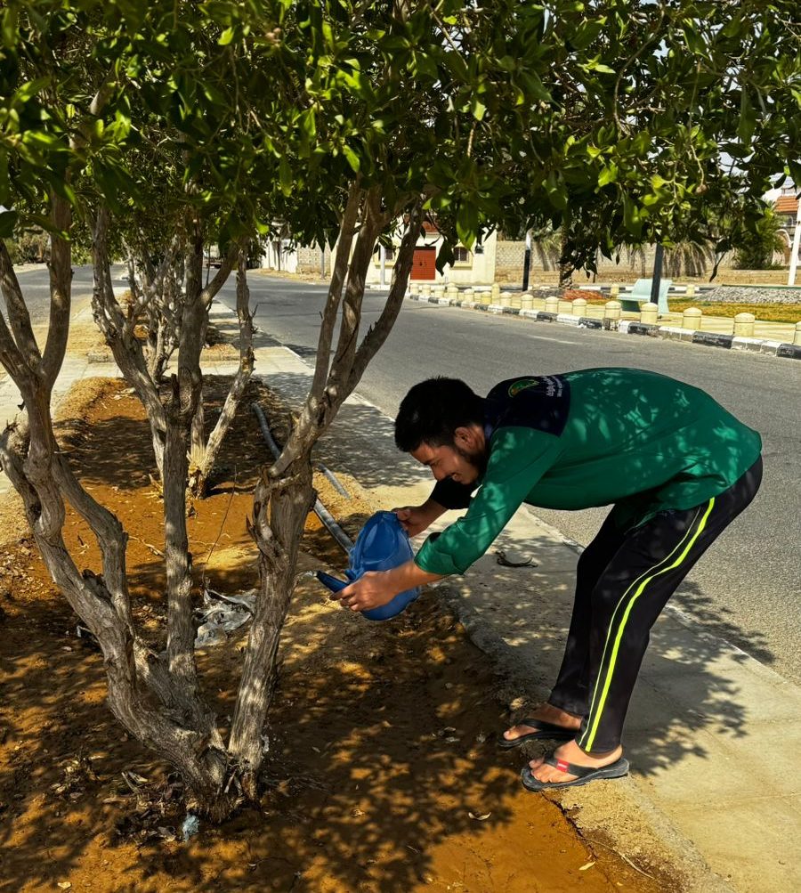 وتركزت المبادرة على متابعة حالة الشتلات المزروعة من خلال أعمال السقاية المنتظمة، وتحسين التربة، والعناية بالنمو النباتي بما يسهم في تعزيز استدامة التشجير. وأسهم المتطوعون بدور فاعل في سقي الشتلات، وتهيئة التربة، وتنظيف الأحواض الزراعية، بما يعكس وعيهم البيئي ورغبتهم في الإسهام بتحسين المشهد الحضري.