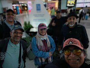 وجدوا الترحيب والتهاني من منسوبي الخطوط السعودية بمطار الملك عبدالعزيز بجدة ،وأكملو الرحالة رحلتهم وصولا للمملكة البحرين ثم مدينة نيودلهي ،حتى وصلوا إلى إقليم لاداخ.