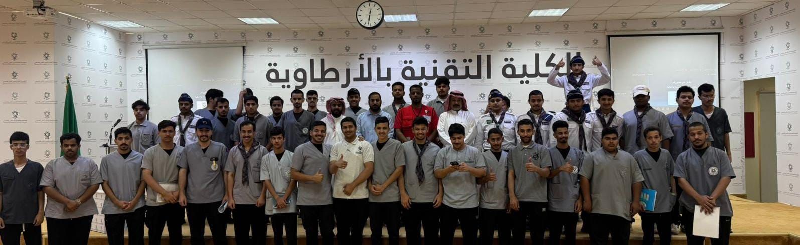 نظمت وحدة السلامة بالكلية التقنية بالارطاوية بمركز بالارطاوية بمحافظة المجمعه بالتعاون مع قسم التقنية الكهربائية برنامج المستجيب الأول للمهارات الأساسية في الاسعافات الأولية. قدم البرنامج المدرب عبدالعزيز الموسى من هيئة الهلال الأحمر السعودي.