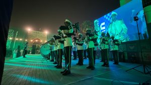 وتواصلت الفعالية مع عروض موسيقية حيّة قدّمت مختارات من الألحان الوطنية، وصولاً إلى الحفل الختامي الذي أحيا ذاكرة الوطن بأغانٍ خالدة ارتبطت بروّاد الموسيقى السعودية وفي مقدمتهم الفنان الراحل طارق عبدالحكيم، الذي يعد من أبرز الأصوات الوطنية في المحافل المحلية والدولية.