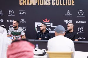 وخلال المؤتمر، أكد المقاتل السعودي عبدالعزيز بن معمر أنه يتعامل مع جميع خصومه بالطريقة نفسها قائلاً: «أفضل أن أجهز لكل خصم بنفس الأسلوب وأضع كل ما لدي داخل الحلبة، لا يهم من هو الخصم، الأهم أن أفوز وأرفع راية المملكة». أما السعودي مالك باسهل فأعرب عن امتنانه للدعم الجماهيري قائلاً: «في جدة حضرت عائلتي ودعمتني، والجمهور السعودي دائماً حاضر في أي مدينة، وهو يمنحني طاقة إيجابية تدفعني نحو الفوز».