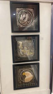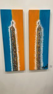 أسماء قيراطي فنانة تشكيلية بالضبط على المعدن مشاركة في إيقاعات لونية بالثلاث لوحات