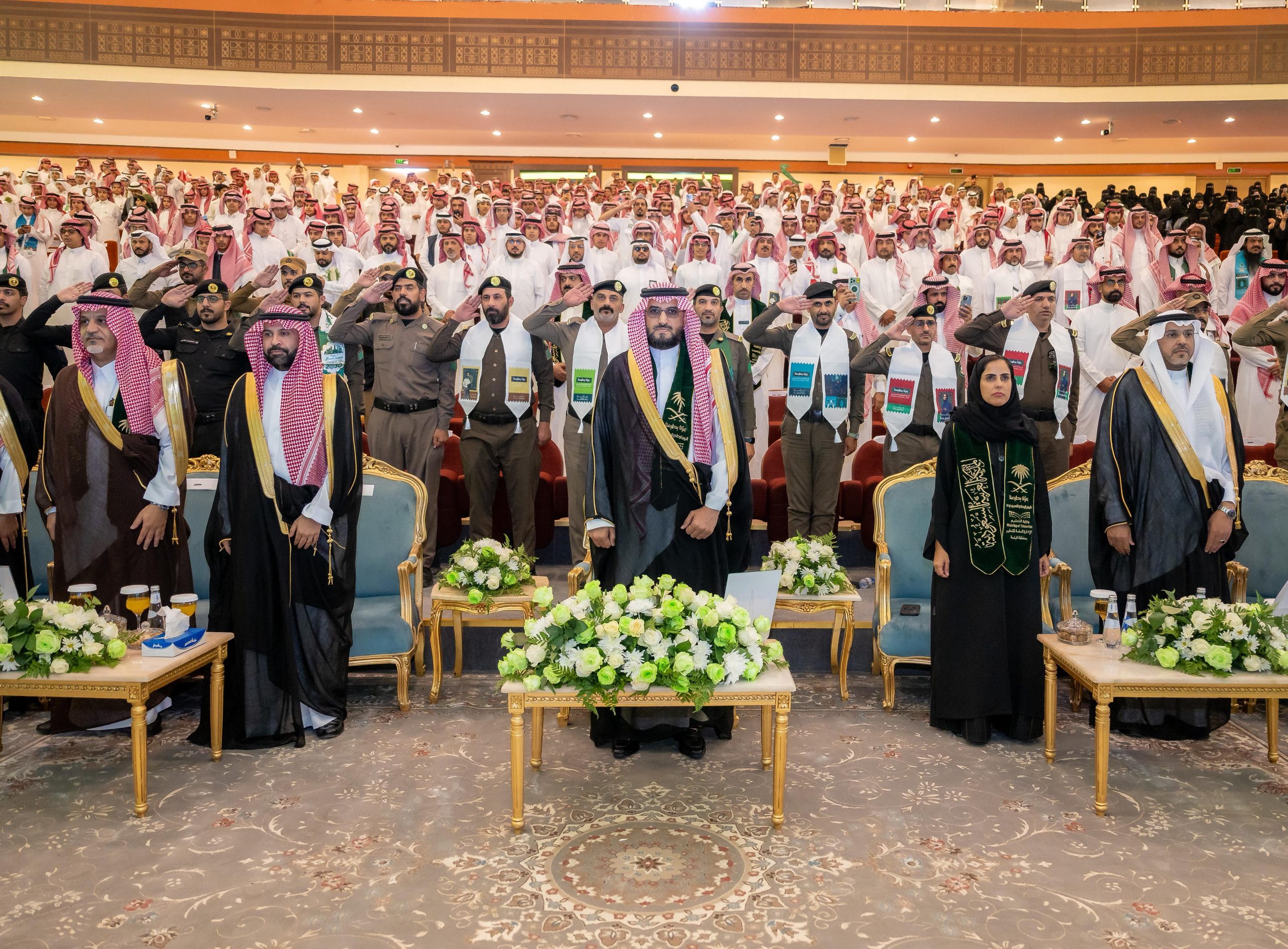 تحت رعاية صاحب السمو الملكي الأمير الدكتور حسام بن سعود بن عبدالعزيز أمير منطقة الباحة؛ نظمت الإدارة العامة للتعليم بالمنطقة حفلها السنوي بمناسبة اليوم الوطني الخامس والتسعين للمملكة، وذلك بمركز الملك عبدالعزيز الحضاري، بحضور سعادة وكيل إمارة المنطقة الدكتور عبدالمنعم بن ياسين الشهري، ووكيل وزارة التعليم للإبتعاث الدكتورة لينا الطعيمي، وعدد من مديري الإدارات الحكومية والقيادات التعليمية بالمنطقة.