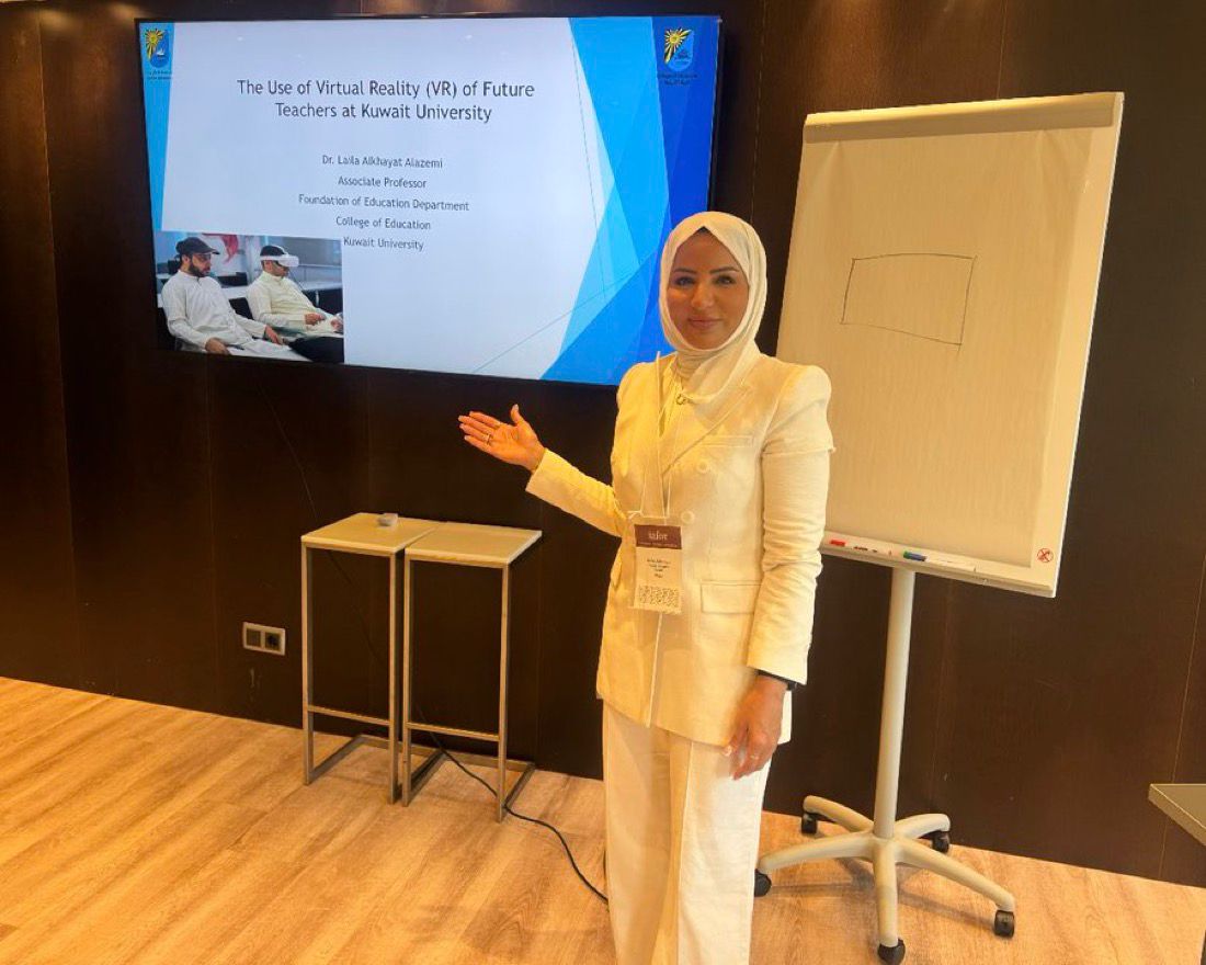 قدّمت الدكتورة ليلى سعود الخياط العازمي، من كلية التربية في جامعة الكويت، اليوم دراسة بحثية خلال مشاركتها في مؤتمر IAFOR الدولي، تناولت فيها موضوع “استخدام معلمي المستقبل لتقنية الواقع الافتراضي (VR) في التعليم بجامعة الكويت”.