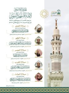 حددت رئاسة الشؤون الدينية بالمسجد الحرام والمسجد النبوي: الجدول الأسبوعي لأئمة الحرمين الشريفين من يوم غد الأحد ١٣ ربيع الآخر إلى يوم السبت القادم ١٩ ربيع الآخر ١٤٤٧هـ.