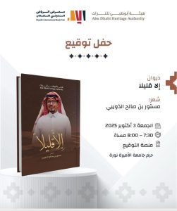 وقّع “شاعر المليون” مستور الذّويبي، على ديوانه الجديد “إلّا قليلًا” بمنصَّة التَّوقيع بمعرض الرّياض الدّولي للكتاب 2025، الذي تُنظِّمه هيئةُ الأدب والنَّشر والتَّرجمة، ويستضيفه حرمُ جامعة الأميرة نورة هذا العام.