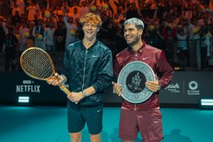 وشهد النهائي مواجهة تحمل طابعًا تاريخيًا، حيث التقى اللاعبان (ألكاراز وسينر) في خمس نهائيات خلال عام 2025، ويُعدّ نهائي الرياض السادس بينهما هذا العام، في واحدة من أبرز بطولات التنس في العصر الحديث. ويتميز ألكاراز بالقوة البدنية والسرعة الهجومية، في حين يعتمد سينر على الدقة والهدوء التكتيكي، وهو ما جعل كل مواجهة بينهما تحمل طابعًا خاصًا وتتقرر بفوارق بسيطة للغاية.