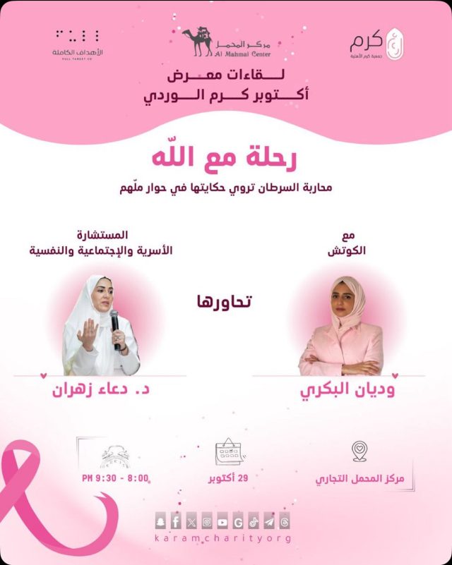 ضمن الأنشطة والبرامج والفعاليات والمبادرات التي تقوم بها جمعية كرم بجدة تقيم مساء غد الأربعاء التاسع والعشرون من شهر أكتوبر الحالي