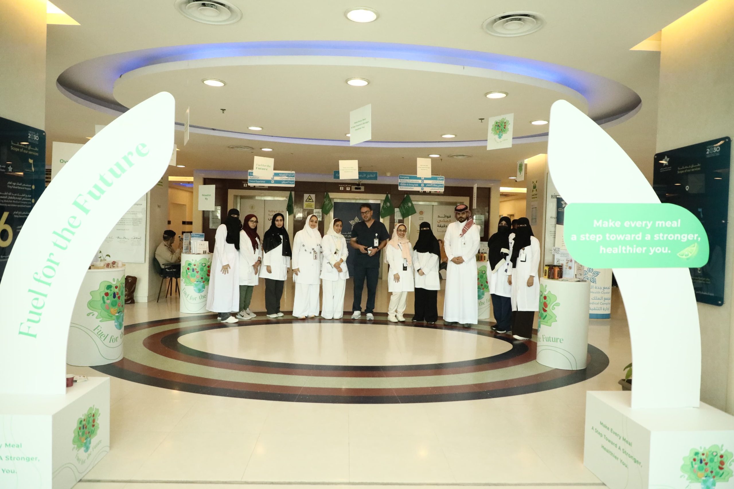 نظّم مجمع الملك عبدالله الطبي عضو تجمع جدة الصحي الثاني، فعالية توعوية بمناسبة اليوم العالمي للأغذية، وذلك في البهو الرئيسي للمجمع، بحضور الدكتور أحمد الغامدي نائب المساعد للخدمات المساندة، يرافقه الدكتورة آيات رئيس قسم الأشعة، ومشرفتا الخدمات التمريضية الأستاذة إيناس خياط والأستاذة وجدان، ورئيس قسم التغذية العلاجية الأستاذ مقرن الحربي.