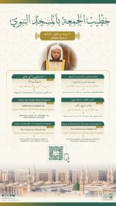 فيما يخطب ويؤم المصلين في المسجد النبوي فضيلة الشيخ الدكتور عبدالمحسن بن محمد القاسم.
