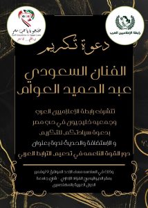 تلقى الفنان السعودي الكبير عبدالحميد العوام دعوة من رابطة الإعلاميين العرب وجمعية خليجيون في حب مصر وذلك للتكريم وللاستضافة والحديث بندوة أتت بعنوان دور القوة الناعمة في تدعيم الترابط العربي.