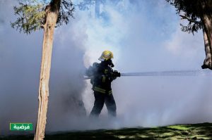 وشهدت الفرضية، تنفيذ حريق في (5) مواقع ميدانية داخل الغابة، وموقع مخصّص لمشاركة الطيران لتنفيذ عمليات الإطفاء الجوي، وإنشاء منطقة إسناد، وتشغيل منطقة إيواء وفرز طبي، وتفعيل دور جمعيات الإغاثة.