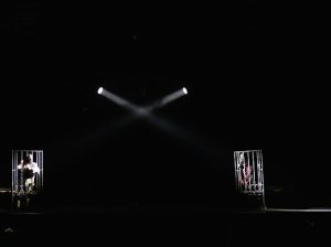 وتتعمق المسرحية في رحلة الإنسان مع ذاته، بين أسئلة الحقيقة والمعنى، عبر شخصيتي فارع وجازم اللتين تجسدان الصراع الأزلي بين الروح والعقل، الشك واليقين، والانفتاح والثبات.