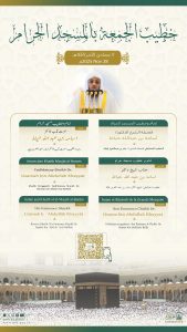 وسيتولى فضيلة الشيخ الدكتور أسامه خياط بإمامة المصلين وإلقاء خطبة الجمعة في المسجد الحرام.