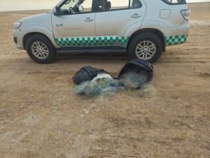 حيث عُثر بحوزة المخالفين خلال عملية الضبط على ستة شباك صيد من نوع “أشورة” المصنوعة من النايلون، وهي أدوات محظورة لما تسببه من أضرار بالغة على البيئة البحرية، وتهديدها المباشر لتوازن النظم البيئية واستدامة المخزون السمكي.