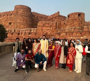 ثم توجهوا إلى قصر أغرا (قلعة أغرا) هو معلم تاريخي ضخم في مدينة أغرا شمال الهند، ويُعتبر أحد أهم الحصون الإمبراطورية في العهد المغولي، إضافةً إلى أنه كان الإقامة الرسمية للأباطرة المغول قبل بناء تاج محل ويُسمى أيضًا “القلعة الحمراء” بسبب بنائه بكتل ضخمة من الحجر الرملي الأحمر