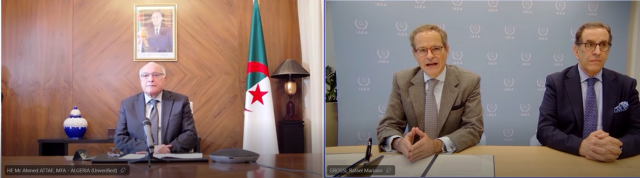 وجرى التوقيع خلال محادثات عبر تقنية التحاضر المرئي عن بعد، أجراها وزير الدولة، وزير الخارجية الجزائري، أحمد عطاف، مع المدير العام للوكالة الدولية للطاقة الذرية، رفائيل ماريانو غروسي.
