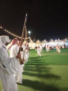 الشاعر وليد المنهي، الشاعر فهد عيدان، والشاعر محمد المنجلي، الذين قدّموا لون العرضة بأجمل قصائدها، وسط تفاعل كبير من الجمهور. كما شاركت فرقة الزير عبدالرحمن الغامدي مقدّمة لوحة فنية تراثية أبهرت الحضور وأضفت على المكان طابع الفرح والإمتاع.