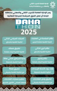 ويأتي تنظيم “باحة ثون 2025” في إطار جهود المؤسسة العامة للتدريب التقني والمهني لتعزيز الابتكار التقني، وبناء منظومة ابتكارية تسهم في دعم التنمية الشاملة بمنطقة الباحة.