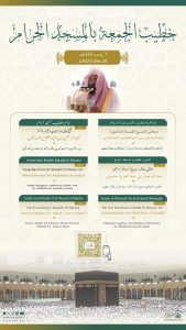 وسيتولى معالي الشيخ الأستاذ الدكتور عبدالرحمن السديس إمامة المصلين وإلقاء خطبة الجمعة في المسجد الحرام.