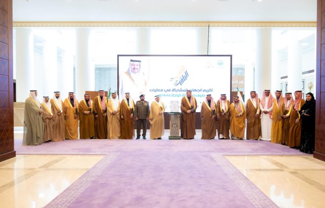 كرّم صاحب السمو الملكي الأمير الدكتور حسام بن سعود بن عبدالعزيز أمير منطقة الباحة، رئيس اللجنة الإشرافية العليا لمهرجان صيف الباحة 46، الجهات واللجان المشاركة في فعاليات المهرجان، وذلك خلال استقبال سموه بمقر الإمارة اليوم، مديري الجهات الحكومية وأعضاء اللجان العاملة في صيف الباحة.