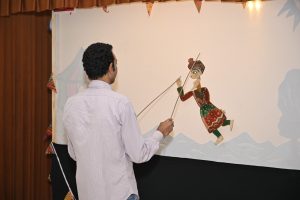 قدم الفنان مصطفى الصباغ من خلال ورشة فنون العرائس التابعة لقطاع صندوق التنمية الثقافية ضمن برنامجه الفنى والثقافى بمركز ابداع بيت السحيمى، دراما تعريفية لفن خيال الظل فى لغة درامية عبر صور ومشاهد تمثيلية بمشاركة المتدربين، تروى وتكشف عن اسرار وجوهر مفهوم فن خيال الظل، حيث يُقدم تعريفا يقول: من خلف ستار بيضاء من القماش القطنى المشدود على هيكل خشبى، وضوء ينفذ من بين ثنايا أنسجتها وطبقاتها الرقراقة، تظهر دمى أو عرائس او شخوص خيال الظل ” للناظرين، فى صورة مغايرة تماما عن الظل التقليدي القاتم الرمادى” الأسود”، بل زاهية وملونة أقرب وأشبه لطبيعة ما تصور وتعبر عنه، انسانا، حيوانا، نباتا، وأشياء.