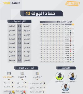 يشهد دوري يلو لأندية الدرجة الأولى للمحترفين إثارة تزداد جولة بعد الأخرى، وسط منافسة قوية على الصدارة أو البقاء في مراكز المقدمة سعيًا وراء حلم الصعود.وأوفت الجولة الثالثة عشر من دوري يلو التي اختتمت الجمعة بوعودها، حيث شهدت مواجهات قوية أسفرت عن تقلبات في جدول الترتيب على مستوى مراكز المقدمة، وإن كان أبها واصل الحفاظ على صدارته بفضل فوزه على ضيفه الطائي بنتيجة 3-1 ليصل للنقطة 30 بفارق 3 نقاط عن أقرب ملاحقيه.وتواصلت انطلاقة الدرعية الذي تمكن من خطف مركز الوصافة بعد فوزه على مضيفه الرائد 3-2 مستغلًا تعثر أبها الذي تعادل أمام الجبلين 2-2 ليتراجع العلا إلى المركز الرابع برصيد 26 نقطة بفارق نقطة عن الدرعية والعروبة صاحبي المركزين الثاني والثالث بالرصيد ذاته “27 نقطة” مع أفضلية تهديفية للأول.وإذا كان صراع الصدارة يشتعل الجولة تلو الأخرى، فإن صراع الهدافين لا يقل شراسة إذ يتصدر لاعب أبها “سيلا سو” قائمة الهدافين بـ 14 هدفًا يليه نوانكو سيمون لاعب العروبة “12 هدفًا” ثم كل من جايتان لابورد “الدرعية” وايفتيميس كولوريس “العلا” بـ 11 هدفًا لكل منهما.وإذا كان أبها قد حصد حتى الآن 30 نقطة فإنه سجل مثلها ليحافظ على موقعه كأقوى هجوم في دوري يلو بفارق هدف وحيد عن العلا الذي يحل ثانيًا بـ 29 هدفًا، قم الدرعية بـ 26 هدفًا.وعلى مستوى الدفاع، لا يزال الفيصلي يغرد وحيدًا في صدارة أقوى دفاع إذ لم تستقبل شباكه سوى 8 أهداف فقط في 12 مباراة – له مباراة مؤجلة – بينما يليه أبها المتصدر الذي تلقت شباكه 11 هدفًا، ثم العلا “12 هدفًا”.وأصبح أبها منفردًا بأكثر الأندية فوزًا “9 انتصارات” يليه كل من الدرعية، العروبة والبكيرية “8 انتصارات لكل منهم”، ثم العلا “7 انتصارات”، أما على صعيد الأقل الخسارة يبقى الفيصلي الفريق الوحيد في دوري يلو الذي لم يتجرع حتى الآن مرارة الهزيمة لكنه في المقابل يأتي كأكثر أندية الدوري تسجيلًا للتعادل “8 تعادلات” في مقابل 4 انتصارات.
