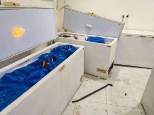 وبيّن أن أحد المواقع أسفر عن ضبط وإتلاف (4550) كيلوجرامًا من اللحوم ورؤوس الأغنام التي بدت عليها علامات تلف، إضافة إلى ضبط (200) لتر من العطور مجهولة المصدر، ومصادرة (13) فريزرًا، مع إغلاق الموقع لعدم توفر عمالة نظامية أو عداد كهرباء.