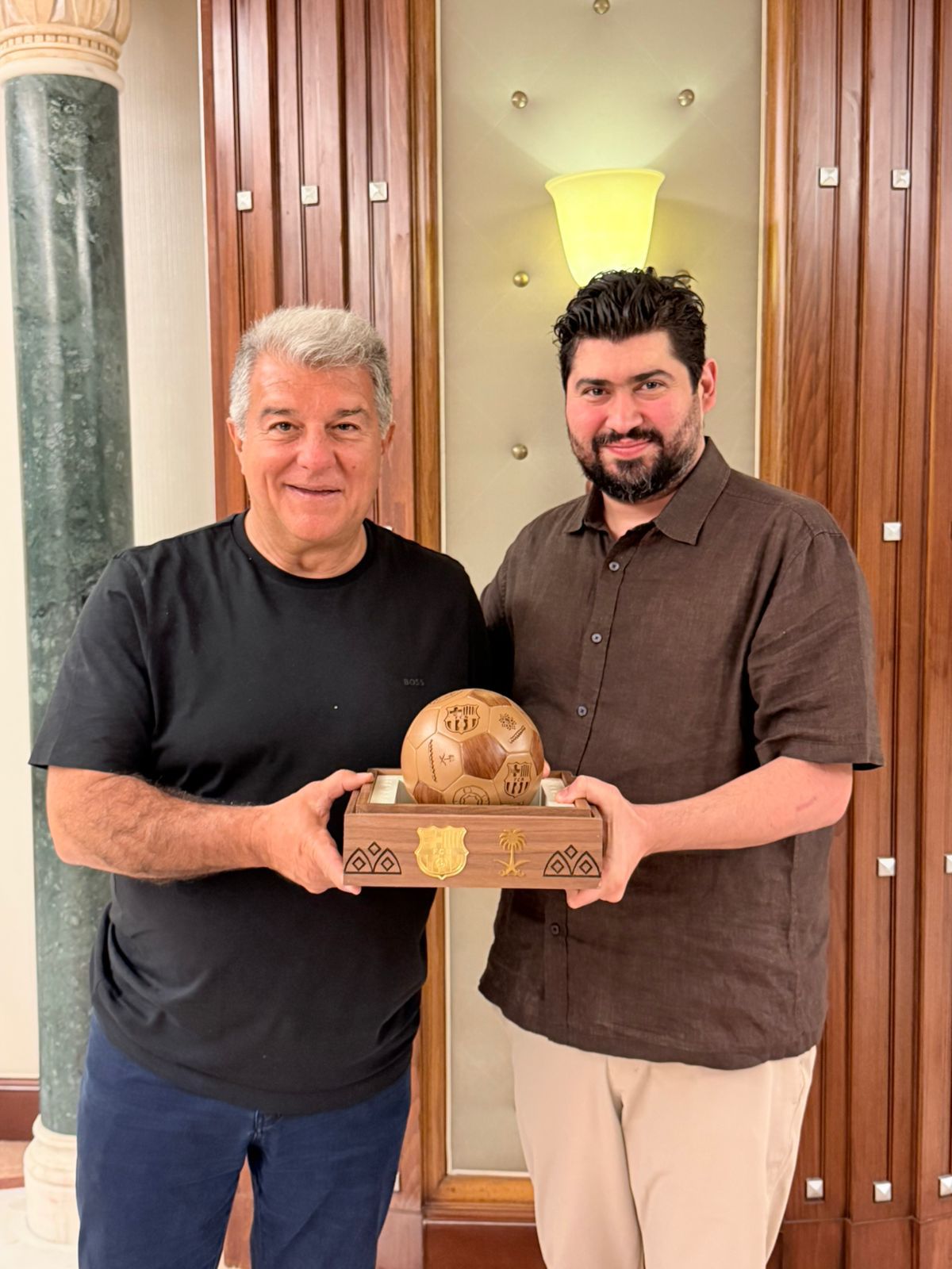 في خطوة تعكس الاهتمام المتزايد للمملكة بالرياضة على المستوى الدولي، قدّم رائد الأعمال السعودي مؤيد محجوب هدية تذكارية إلى رئيس نادي برشلونة خلال زيارته إلى مدينة جدة.