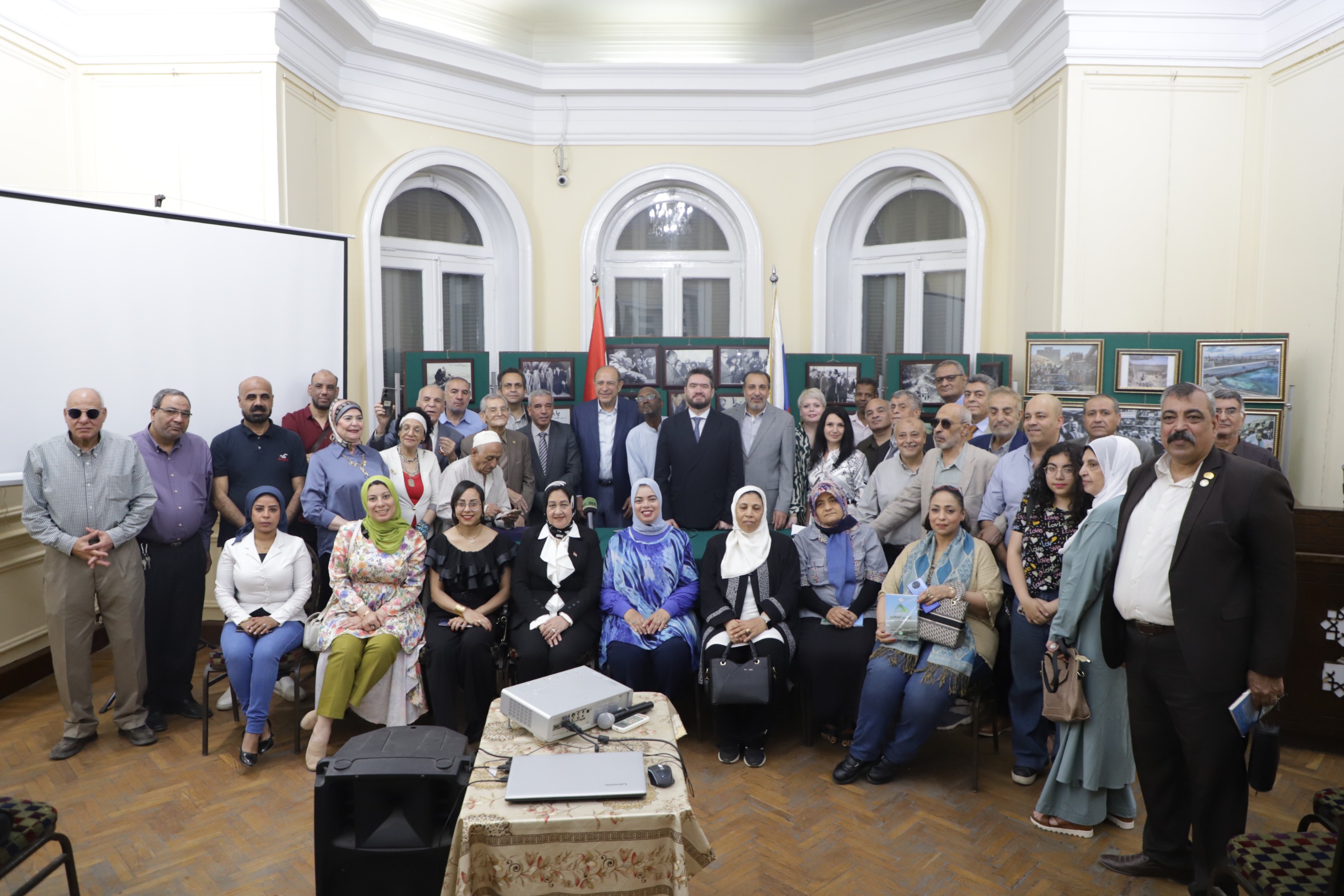 بحضور د. فاديم زايتشيكوف مدير المراكز الثقافية الروسية في مصر، ود. إبراهيم كامل رئيس جمعية الصداقة المصرية الروسية، والسفير عزت سعد سفير مصر السابق في موسكو ونائب رئيس جمعية الصداقة المصرية الروسية، والمهندس صبري العشماوي رئيس جمعية بناة السد العالي، والمهندس رشدي عطية نائب رئيس جمعية بناة السد العالي.