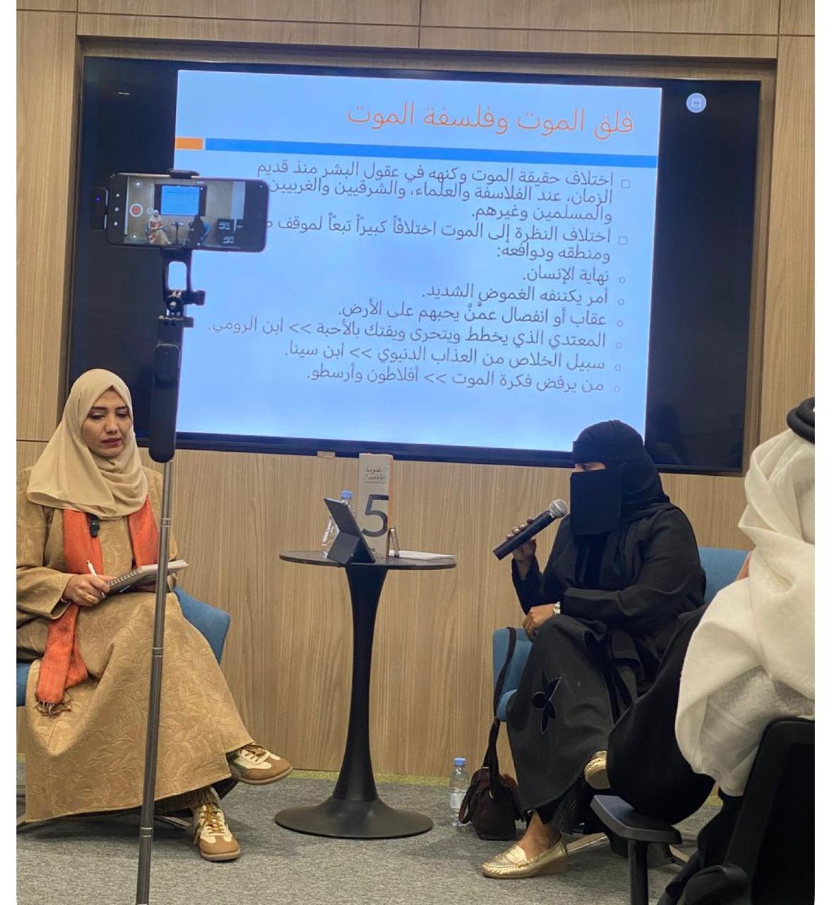 وقد قدّمت اللقاء الأستاذة نورة الشبر، وحاورتها الدكتورة ميسم الشمري، حيث تألقت الأستاذة نورة بطرحٍ عميق وقراءات شعرية لافتة، إلى جانب عقد مقارنة أدبية وفكرية بين الشاعرين، عكست سعة اطلاعها وقدرتها على التحليل والمقارنة. كما أبدعت الدكتورة ميسم الشمري في إدارة الحوار، وأسهمت بمحاوراتها الثرية في تعميق النقاش وإغناء محاور اللقاء.
