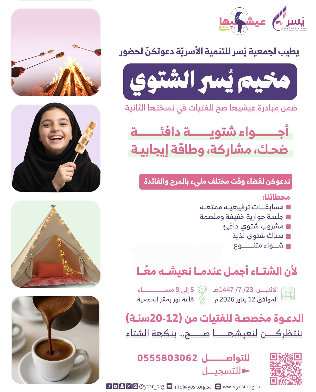 مخيم يُسر الشتوي ضمن مبادرة عيشيها صح للفتيات في نسختها الثانية في أجواء شتوية دافئة،
