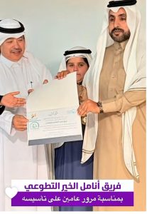 احتفل فريق أنامل الخير التطوعي بمرور عامين على تأسيسه، في احتفالية مميزة شهدت حضوراً رسمياً ومجتمعياً لافتاً، يتقدمهم الرئيس الفخري لفريق صدى التطوع الإعلامي سعادة اللواء متقاعد/ محمد فريح الحارثي وقائد الفريق، ورئيس تحرير صحيفة صدى نيوز، سعادة الاستاذ خالد مرعي، وذلك دعماً لمسيرة الفريق وتقديراً لأثره الملموس في العمل التطوعي.