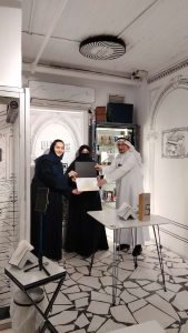 وقامت الأستاذة إيمان الشريف بتكريم المحاضر ، والتقطت الصور التذكارية بهذه المناسبة.