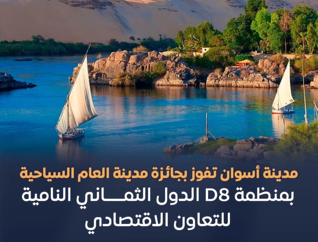 حصدت أسوان جائزة مدينة العام السياحية لعام ٢٠٢٦ التي تنظمها للعام الثاني على التوالي منظمة الدول الثماني النامية للتعاون الاقتصادي، وذلك بعد حصولها على أكبر عدد من أصوات الدول الأعضاء بالمنظمة.