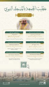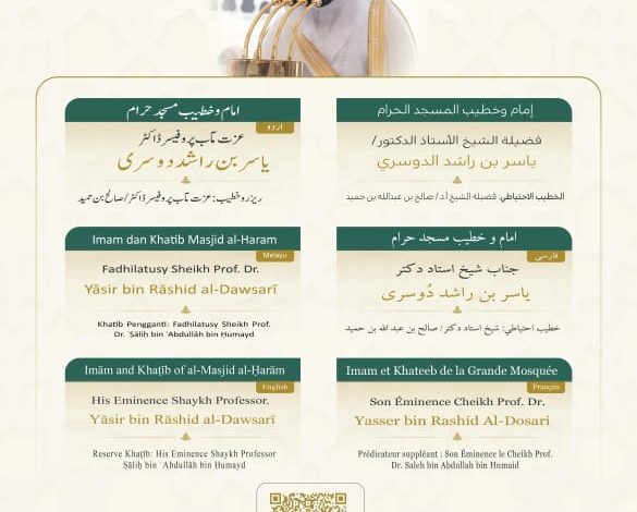 وسيتولى فضيلة الشيخ الأستاذ الدكتور ياسر الدوسري بإمامة المصلين وإلقاء خطبة الجمعة في المسجد الحرام.