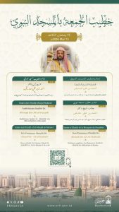فيما يخطب ويؤم المصلين في المسجد النبوي فضيلة الشيخ الدكتور أحمد الحذيفي