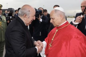وأعرب الرئيس عبد المجيد تبون عن سعادته باسم الجزائر حكومة وشعبا ومؤسسات بالترحيب بالبابا ليون الرابع عشر في أرض التاريخ العريق وتلاقي الحضارات وأن وجوده بين الجزائريين “حدث تاريخي بكل ما تحمله الكلمة من معان ومرام”، وقال الرئيس: “زيارتكم هي أول زيارة لبابا الفاتيكان إلى بلادنا منذ استقلالها، وهو ما يضفي عليها طابعا فريدا ويجعلها