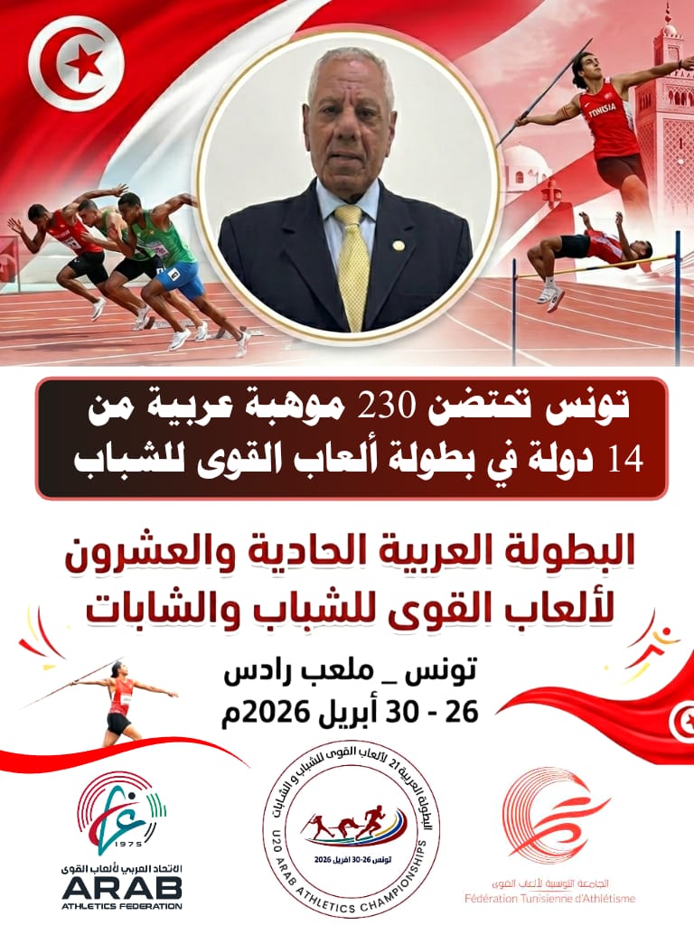 أكد السيد عبيد عبيد، المدير التنفيذي للاتحاد العربي لألعاب القوى: أنّ التحضيرات الخاصة بالبطولة العربية للشباب والشابات، المقررة في تونس خلال الفترة الممتدة من 26 إلى 30 أبريل الجاري، بلغت مراحلها النهائية، وذلك قبل نحو أسبوع من انطلاق المنافسات، في ظل مؤشرات إيجابية تعكس جاهزية تنظيمية وفنية متقدمة.